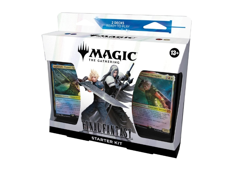 Step into the iconic worlds of FINAL FANTASY with a strategic twist in Magic: The Gathering! This beginner-friendly Starter Kit features two ready-to-play 60-card decks inspired by FINAL FANTASY lore, spells, and characters. Learn the game, collect exclusive cards, and battle it out as Cloud or Sephiroth!